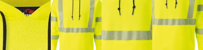 - 360° visibility with front and back 2" segmented heat seal silver reflective striping