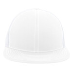 * Poly/cotton blend * Trucker Mesh * Full-profile * Flat bill * Self-material undervisor * Front panel eyelets * Pro-stitched finish * Contrast stitching * Snapback adjustable