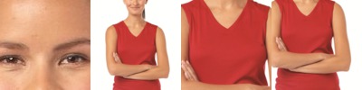 - Slight scoop neck