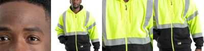 HVF023 Men's Hi-Vis Class 3 Color Block Full-Zip Hooded Sweatshirt